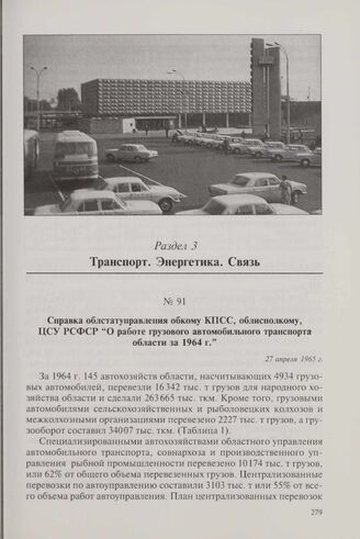 Справка облстатуправления обкому КПСС, облисполкому, ЦСУ РСФСР «О работе грузового автомобильного транспорта области за 1964 г.». 27 апреля 1965 г.