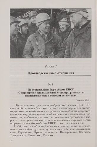 Из постановления бюро обкома КПСС «О перестройке организационной структуры руководства промышленностью и сельским хозяйством». 1 декабря 1962 г.