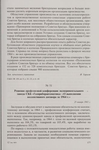 Решение профсоюзной конференции экспериментального завода СКБ «Газприборавтоматика» «О выполнении коллективного договора за 1964 г.». 25 января 1965 г.