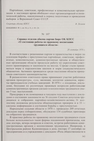 Справка отделов обкома партии бюро ОК КПСС «О состоянии работы по правовому воспитанию трудящихся области». 28 сентября 1970 г. // ЦХИДНИКО. Ф. 1, оп. 54, д. 12, л. 105-108.