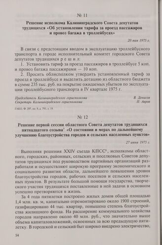Решение исполкома Калининградского Совета депутатов трудящихся «Об установлении тарифа за проезд пассажиров и провоз багажа в троллейбусах». 20 мая 1975 г.