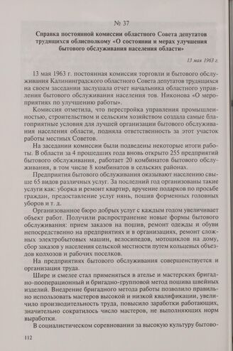 Справка постоянной комиссии областного Совета депутатов трудящихся облисполкому «О состоянии и мерах улучшения бытового обслуживания населения области». 13 мая 1963 г. // ГАКО. Ф. 297, оп. 8, д. 1551а, л. 253-257.