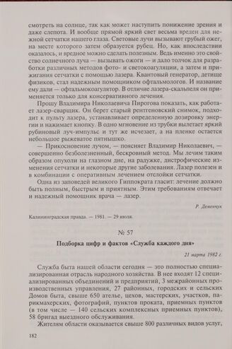 Подборка цифр и фактов «Служба каждого дня». 21 марта 1982 г. // Калининградская правда. — 1982. — 21 марта.
