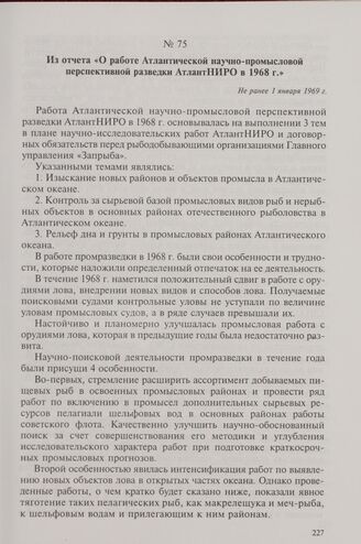 Из отчета «О работе Атлантической научно-промысловой перспективной разведки АтлантНИРО в 1968 г.». Не ранее 1 января 1969 г. // ГАКО. Ф. 255, оп. 1, д. 246, л. 3-7, 11.