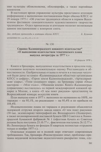 Справка Калининградского книжного издательства «О выполнении издательством тематического плана выпуска литературы за 1977 г.». 16 февраля 1978 г.