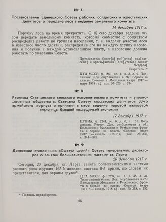Донесение ставленника «Сфатул цэрий» Совету генеральных директоров о занятии большевистскими частями ст. Ларга. 20 декабря 1917 г. // ЦГА МССР, ф. 5259, оп. 1, д. 38, л. 34. Телеграфный бланк. Док. опубликован в сб.: Большевики Молдавии и Румынского фронта в борьбе за власть Советов (март 1917 г. — январь 1918 г.), док. № 338, с. 352.