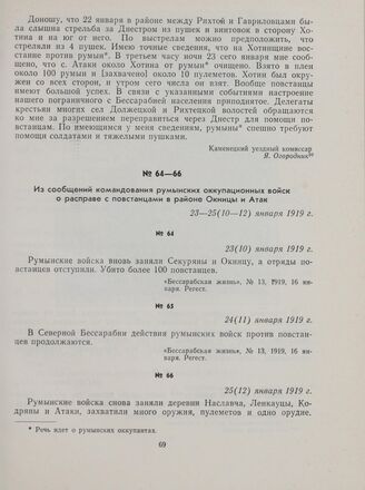 Из сообщений командования румынских оккупационных войск о расправе с повстанцами в районе Окницы и Атак. 25(12) января 1919 г. // «Бессарабская жизнь», № 14, 1919, 17 января. Регест.