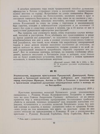Уполномочие, выданное крестьянами Рукшинской, Данкоуцкой, Клишковской и Грозинской волостей своим выборным для ходатайства перед консулами Франции, Англии и США в Румынии о принятии мер к пресечению злодеяний румынских оккупационных войск и выводу...