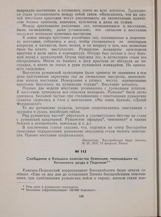 Главная Хотинское восстание: Сб. док. и материалов Документы Сообщение о большом количестве беженцев, перешедших из Хотинского у...