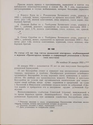Из статьи «15 лет под гнетом румынской олигархии», опубликованной в журнале «Пролетарская правда» и содержащей упоминание о Хотинском восстании. Не позднее 24 января 1933 г.