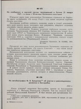 Из автобиографии Ф. В. Балцатова об участии в революционном движении в Бессарабии. 1931 г. // Винницкий облгосархив, ф. Р-1552, оп. 1, д. 5, лл. 3—4. Подлинник.