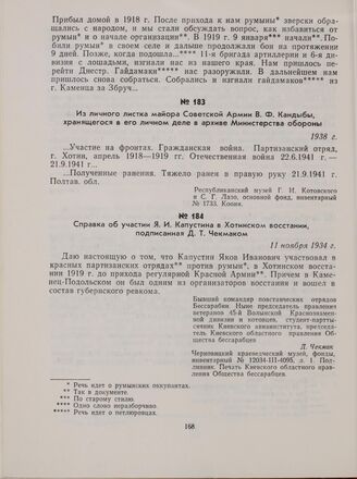 Главная Хотинское восстание: Сб. док. и материалов Документы Справка об участии Я. И. Капустина в Хотинском восстании, подписанн...