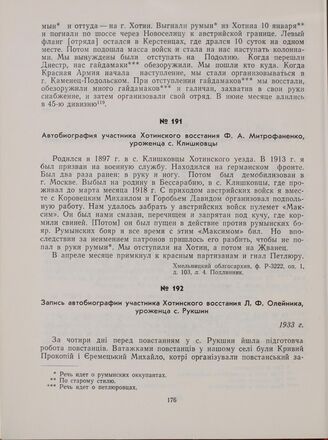 Автобиография участника Хотинского восстания Ф. А. Митрофаненко, ур...