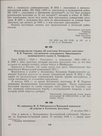 Из заявления Ф. Я. Рябчинского в Винницкий военкомат об участии в Хотинском восстании. 17 октября 1931 г.
