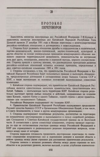 Главная Сборник российско-китайских договоров. 1949-1999 гг. Протокол переговоров. 27 декабря 1991 года, Москва
