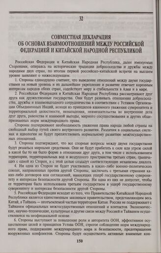 Главная Сборник российско-китайских договоров. 1949-1999 гг. Совместная декларация об основах взаимоотношений между Российской Ф...