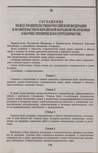 Соглашение между Правительством Российской Федерации и Правительством Китайской Народной Республики о научно-техническом сотрудничестве. Пекин, 18 декабря 1992 года