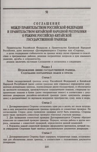 Соглашение между Правительством Российской Федерации и Правительством Китайской Народной Республики о режиме российско-китайской государственной границы. Пекин, 27 мая 1994 года