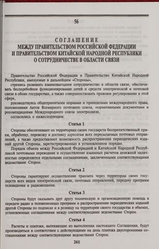 Соглашение между Правительством Российской Федерации и Правительством Китайской Народной Республики о сотрудничестве в области связи. Москва, 21 июня 1994 г.
