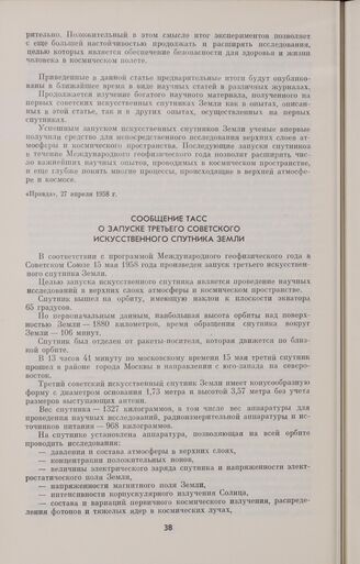 Сообщение ТАСС о запуске третьего советского искусственного спутника Земли // «Правда», 16 мая 1958 г.