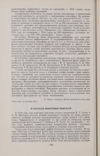 В космосе квантовый генератор // «Правда», 1 ноября 1966 г.