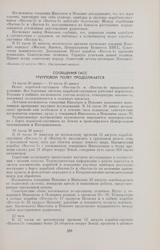 Сообщения ТАСС. Групповой полет продолжается // «Правда», 13 августа 1962 г.