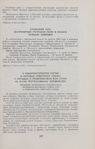 К Коммунистической партии и народам Советского Союза. К народам и правительствам всех стран, ко всему прогрессивному человечеству. Обращение Центрального Комитета КПСС, Президиума Верховного Совета СССР и Правительства Советского Союза // «Правда», 15 августа 1962 г. (Экстренный выпуск).