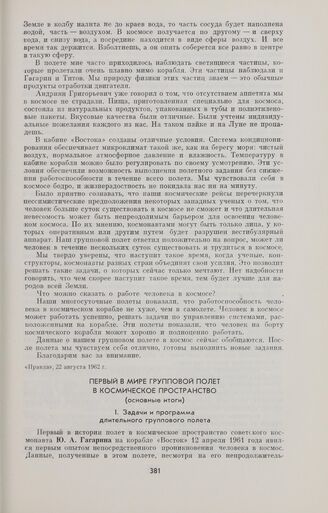 Первый в мире групповой полет в космическое пространство (основные итоги) // «Правда», 22 октября 1962 г.