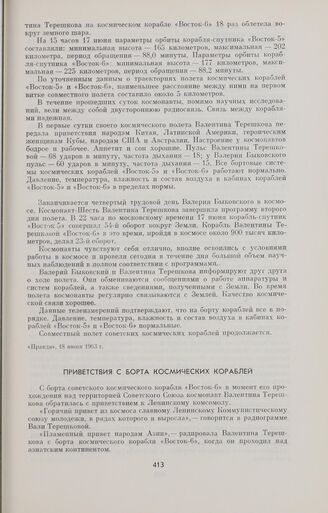 Приветствия с борта космических кораблей // «Правда», 18 июня 1963 г.