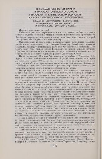 К Коммунистической партии и народам Советского Союза! К народам и правительствам всех стран! Ко всему прогрессивному человечеству! Обращение Центрального Комитета КПСС, Президиума Верховного Совета СССР и Правительства Советского Союза // «Правда», 14 октября 1964 г.