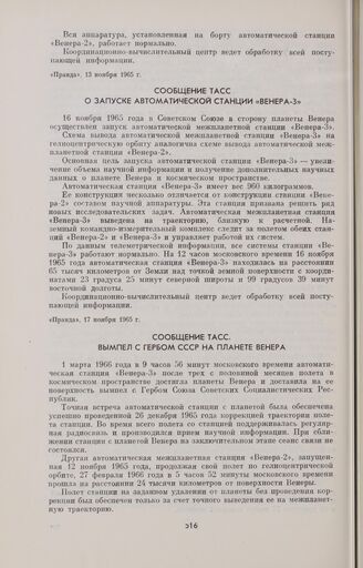 Сообщение ТАСС. Вымпел с гербом СССР на планете Венера // «Правда», 2 марта 1966 г.