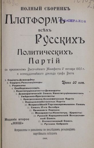 Полный сборник платформ всех русских политических партий