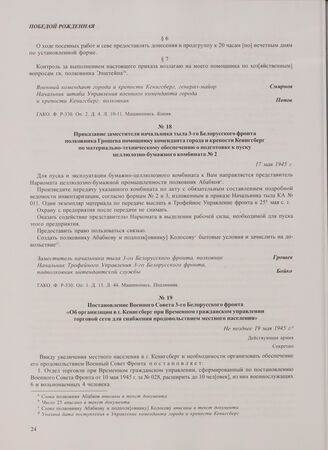 Постановление Военного Совета 3-го Белорусского фронта «Об организации в г. Кенигсберг при Временном гражданском управлении торговой сети для снабжения продовольствием местного населения». Не позднее 19 мая 1945 г.