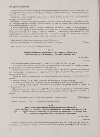 Главная В начале нового пути: Док. и материалы о развитии Калининград. обл.... Приказ № 048 военного коменданта города и крепости Кенигсберг генер...