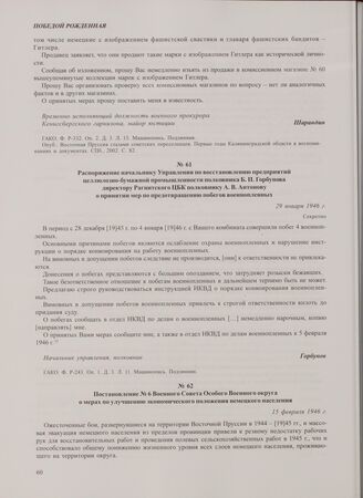 Постановление № 6 Военного Совета Особого Военного округа о мерах по улучшению экономического положения немецкого населения. 15 февраля 1946 г. // ГАКО. Ф. Р-332. Оп. 1. Д. 1. Л. 25-26. Машинопись. Заверенная копия.