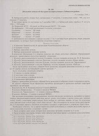 Докладная записка об обустройстве переселенцев в Лабиауском районе. 6 сентября 1946 г. // ЦХИДНИКО. Ф. 121. Оп. 1. Д. 10. Л. 69-70. Машинопись. Подлинник.