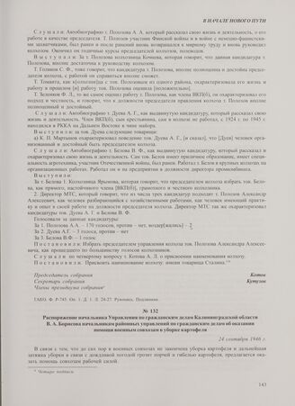 Распоряжение начальника Управления по гражданским делам Калининградской области В.А. Борисова начальникам районных управлений по гражданским делам об оказании помощи военным совхозам в уборке картофеля. 24 сентября 1946 г. // ГАКО. Ф. Р-277. Оп. 1. Д. 3. Л. 26. Машинопись. Заверенная копия.