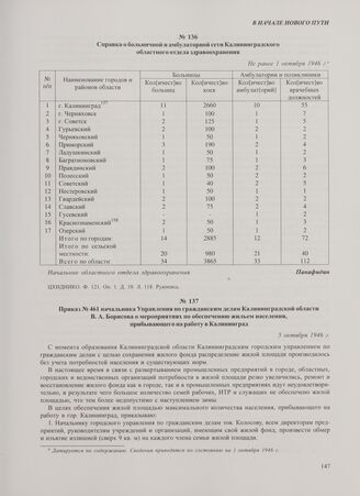Справка о больничной и амбулаторной сети Калининградского областного отдела здравоохранения. Не ранее 1 октября 1946 г. // ЦХИДНИКО. Ф. 121. Оп. 1. Д. 10. Л. 118. Рукопись.