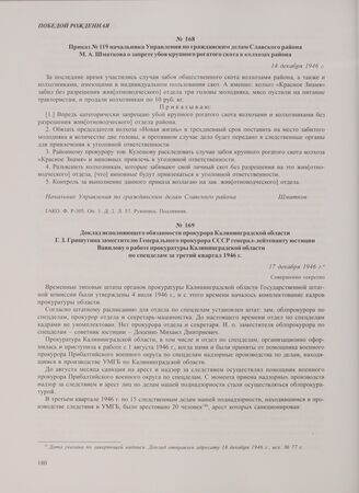 Доклад исполняющего обязанности прокурора Калининградской области Г.З. Гришутина заместителю Генерального прокурора СССР генерал-лейтенанту юстиции Вавилову о работе прокуратуры Калининградской области по спецделам за третий квартал 1946 г. 17 дек...