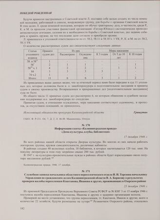 Информация газеты «Калининградская правда» «Дома культуры, клубы, библиотеки». 17 декабря 1946 г.