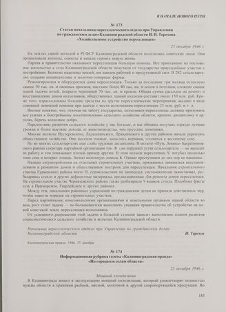 Информационная рубрика газеты «Калининградская правда» «По городам и селам области». 25 декабря 1946 г.