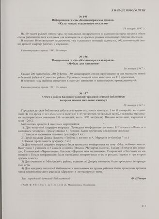Отчет о работе Калининградской городской детской библиотеки во время зимних школьных каникул. 18 января 1947 г.