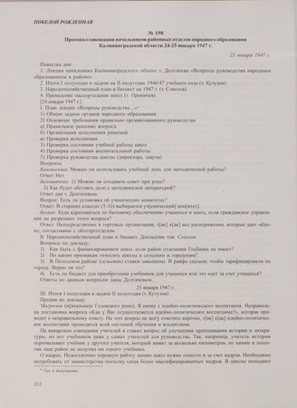 Протокол совещания начальников районных отделов народного образования Калининградской области 24-25 января 1947 г. 25 января 1947 г.