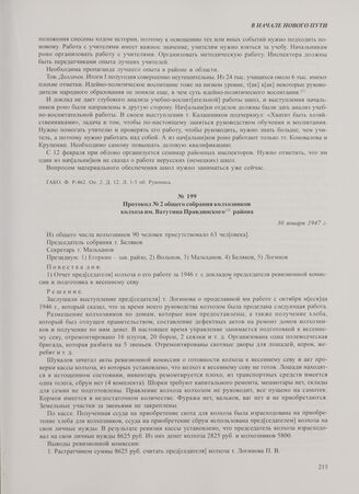 Протокол № 2 общего собрания колхозников колхоза им. Ватутина Правдинского района. 30 января 1947 г. // ГАКО. Ф. Р-851. Оп. 2. Д. 1. Л. 5 об.-8. Рукопись. Подлинник.