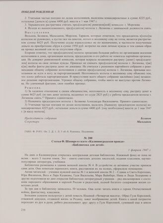 Статья Ф. Шапиро в газете «Калининградская правда» «Библиотека для детей». 1 февраля 1947 г. // Калининградская правда. 1947. 1 февраля.