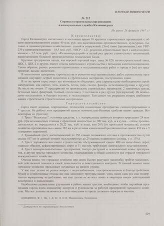 Справка о строительных организациях и коммунальных службах Калининграда. Не ранее 28 февраля 1947 г. // ЦХИДНИКО. Ф. 1. Оп. 1. Д. 22. Л. 8-10. Машинопись. Подлинник.