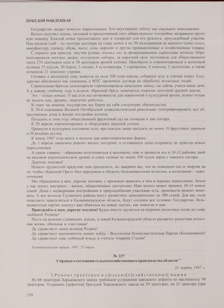 Справка о состоянии сельскохозяйственного производства области. 31 марта 1947 г.