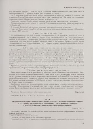Отношение секретаря Калининградского обкома ВКП(б) П.А. Иванова секретарю ЦК ВКП(б) А.А. Кузнецову и Министру путей сообщения СССР И.В. Ковалеву о состоянии и мерах по развитию Калининградского железнодорожного узла. 1 апреля 1947 г. // ЦХИДНИКО. Ф. 1. Оп. 1. Д. 126. Л. 3-5. Машинопись. Отпуск.