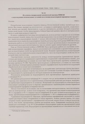 Из отчета специальной химической группы НИИЛВ о нахождении оптимальных условий получения водоупорной пропитки тканей. Москва, 1943 г.