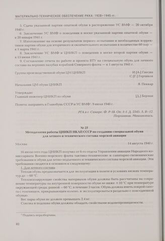 Методология работы ЦНИКП НКЛП СССР по созданию специальной обуви для летного и технического состава морской авиации. Москва, 14 августа 1940 г.